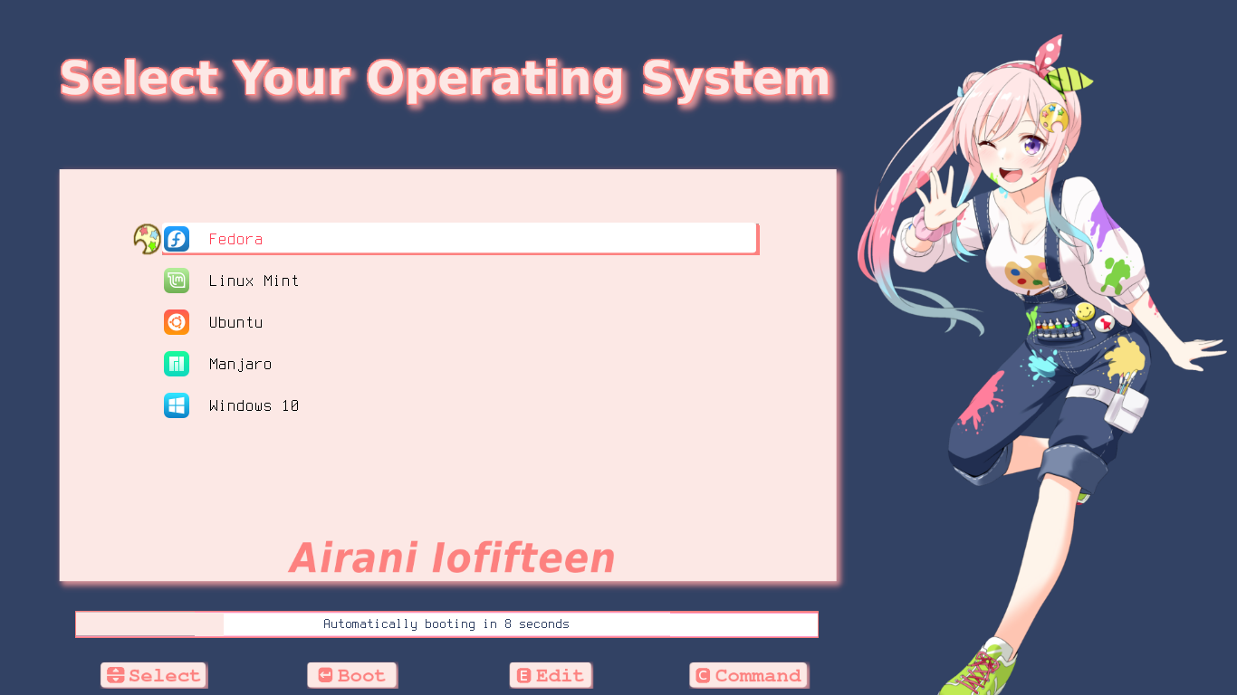 Choose GRUB Theme you want to install, for example from Fate Series version Tohsaka Rin